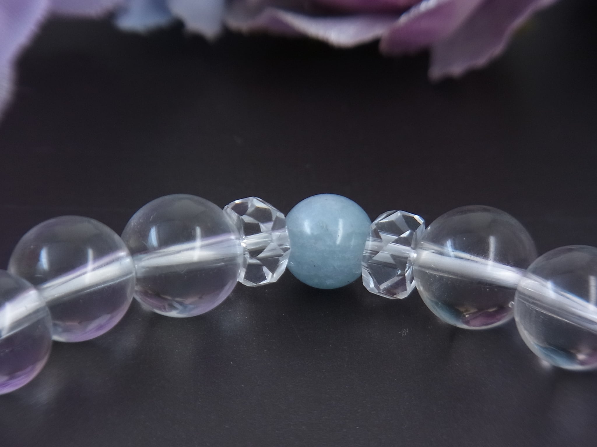海を思わせる水色の アクアマリンと、瑞々しい水晶の輝きが、