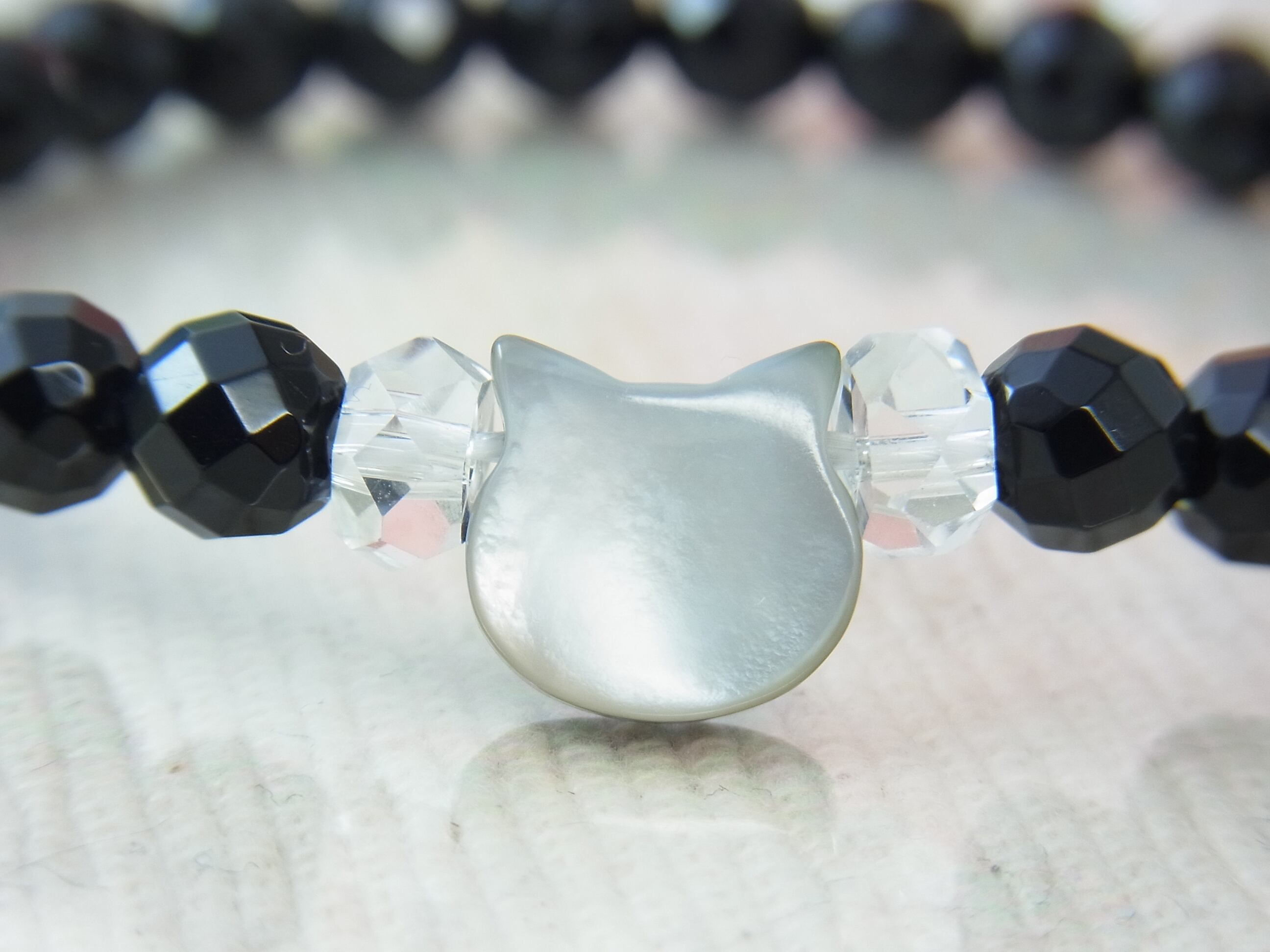 ◆トップに、可愛い 猫モチーフ…ブラックシェル(黒蝶貝)と、