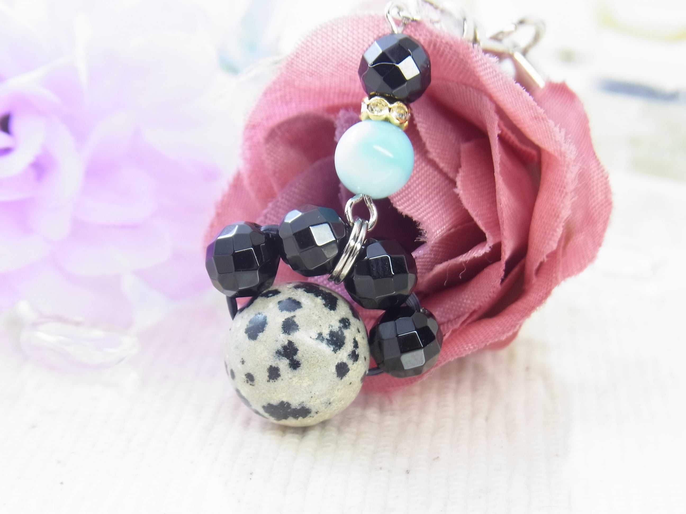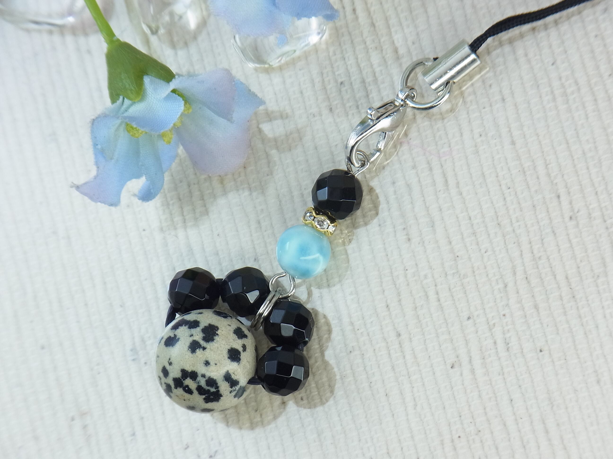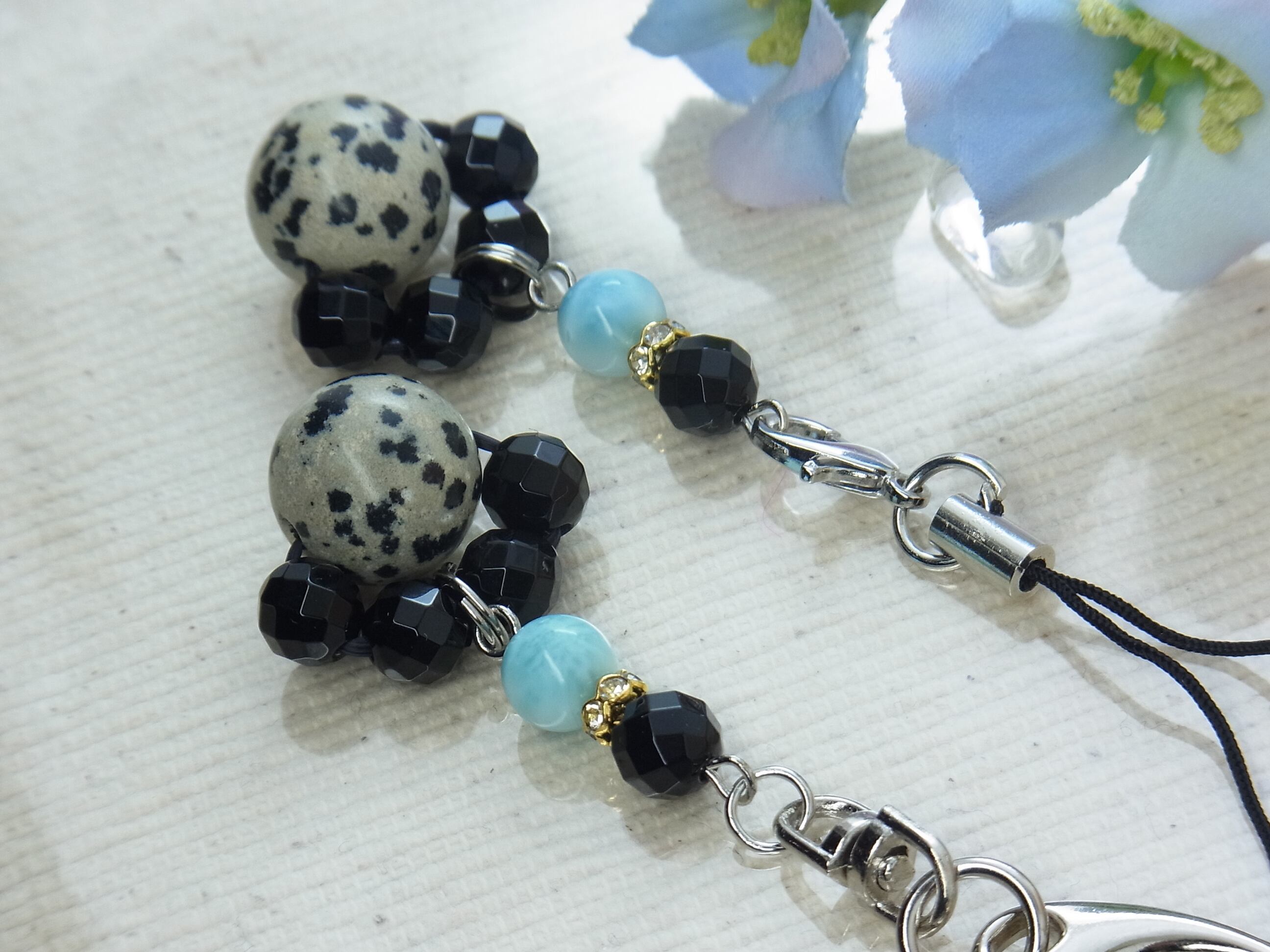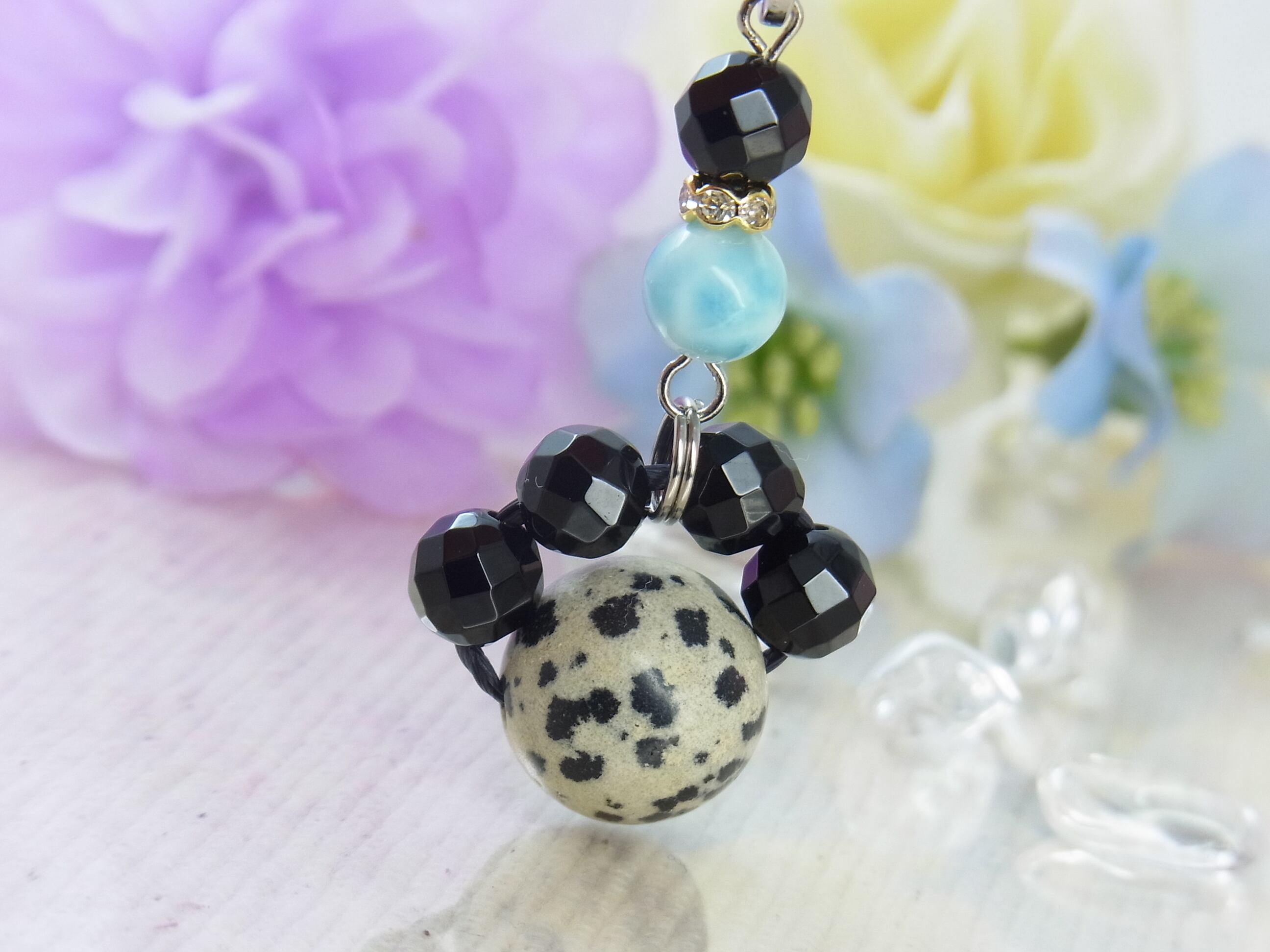 #ラリマー #larimar #ダルメシアンジャスパー #オニキス #天然石 #肉球 #ストラップ #キーホルダー #ねこ #猫 #cat #天然石アクセサリー #オリジナル #癒し #お守り #プレゼント #プチギフト #猫アイテム #猫グッズ #猫デザイン #猫モチーフ #猫アクセサリー #ねこの夢 #LarimarMJ