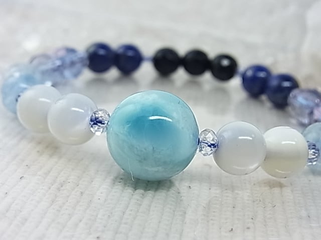 #ラリマー #larimar #大粒ラリマー #天然石ブレスレット #accessory #アクセサリーブレスレット #ラリマーブレスレット #アクアマリン #ラピスラズリ #コスモオーラ #マザーオブパール #ご褒美 #パワーストーン #ブルー #波 #海 #大人可愛い #シンプル #普段使い #お出かけ #ヒーリング #心の安らぎ #癒し#心 #リラックス #ギフト #プレゼント #爽やか #ねこの夢 #LarimarMJ