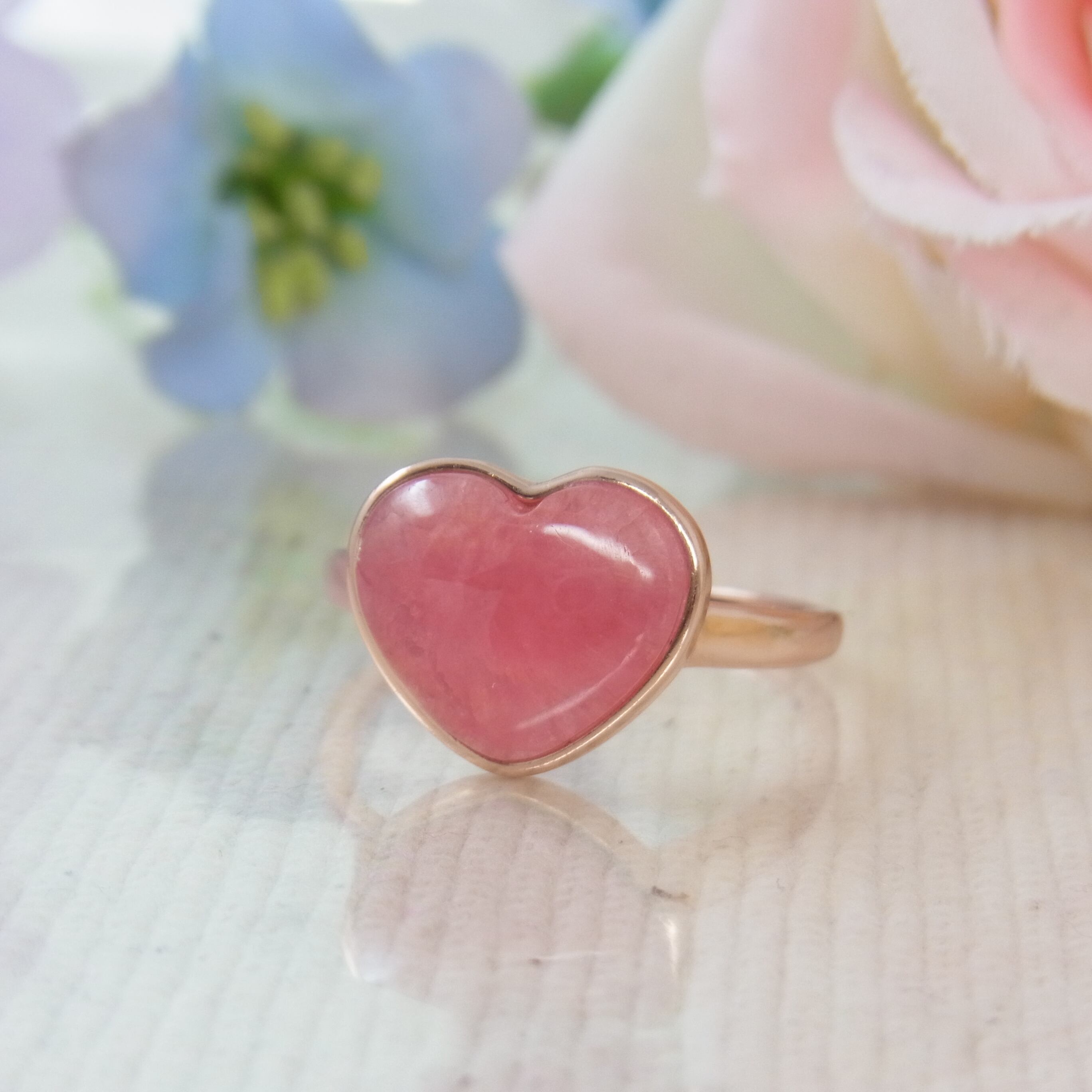 ぷっくりとした可愛いハート型♡ 存在感のあるインカローズリングです。