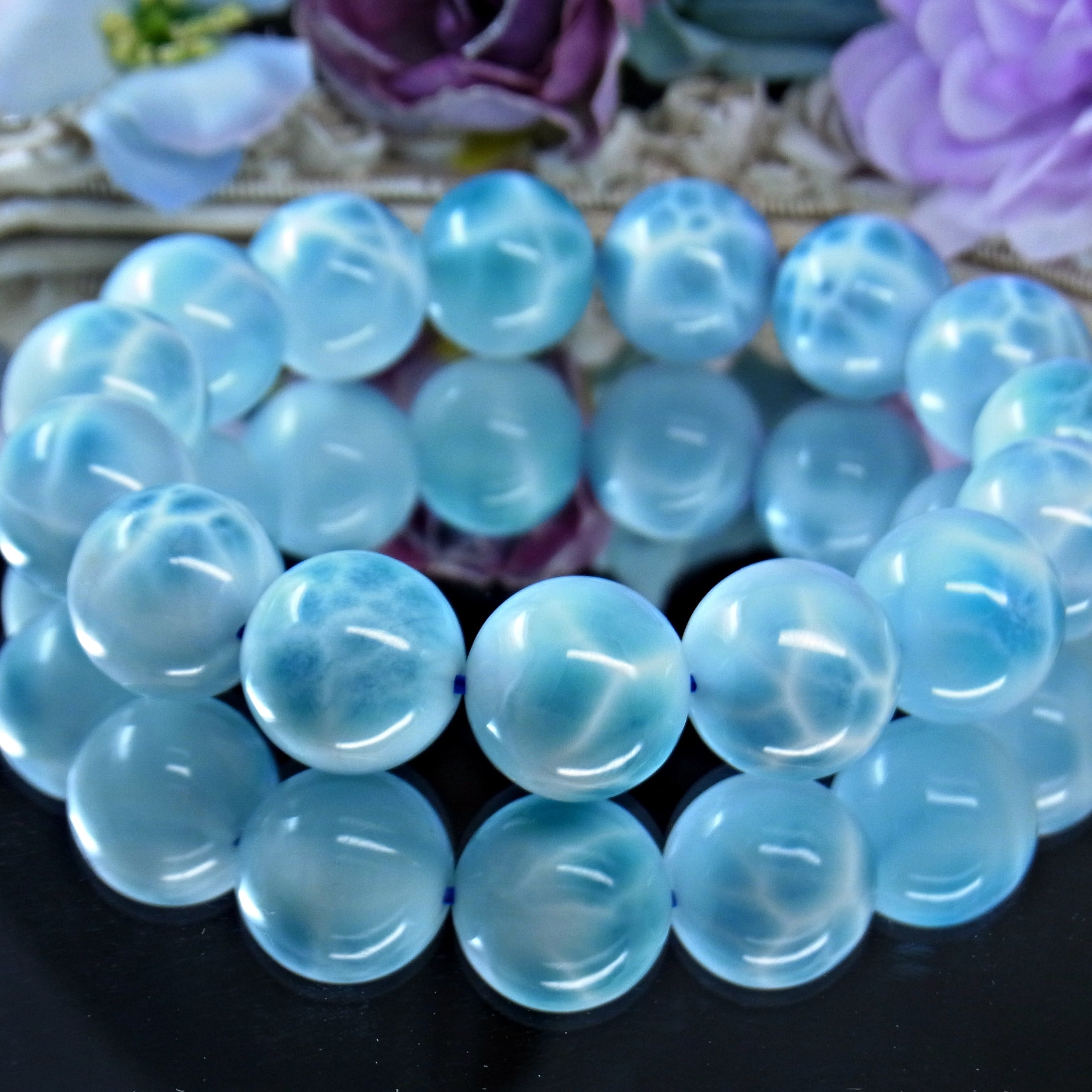 ◆ラリマーブレスレット、滅多に出ない大粒15mmストーン。