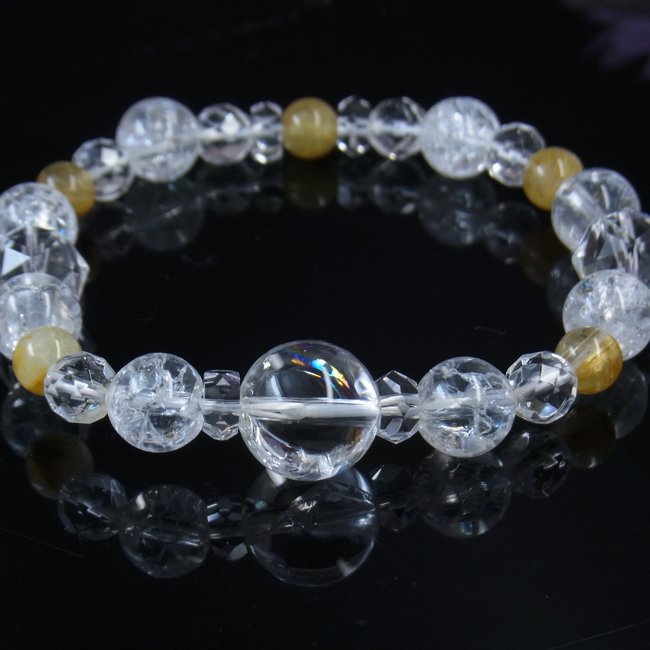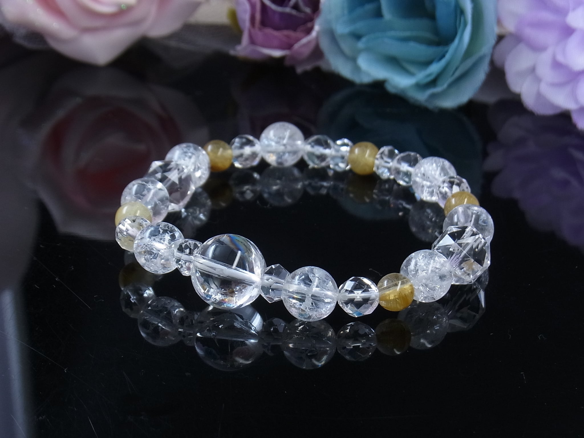 透明感と煌めきが目を惹く、お守りブレスレットをお作りいたしました♪