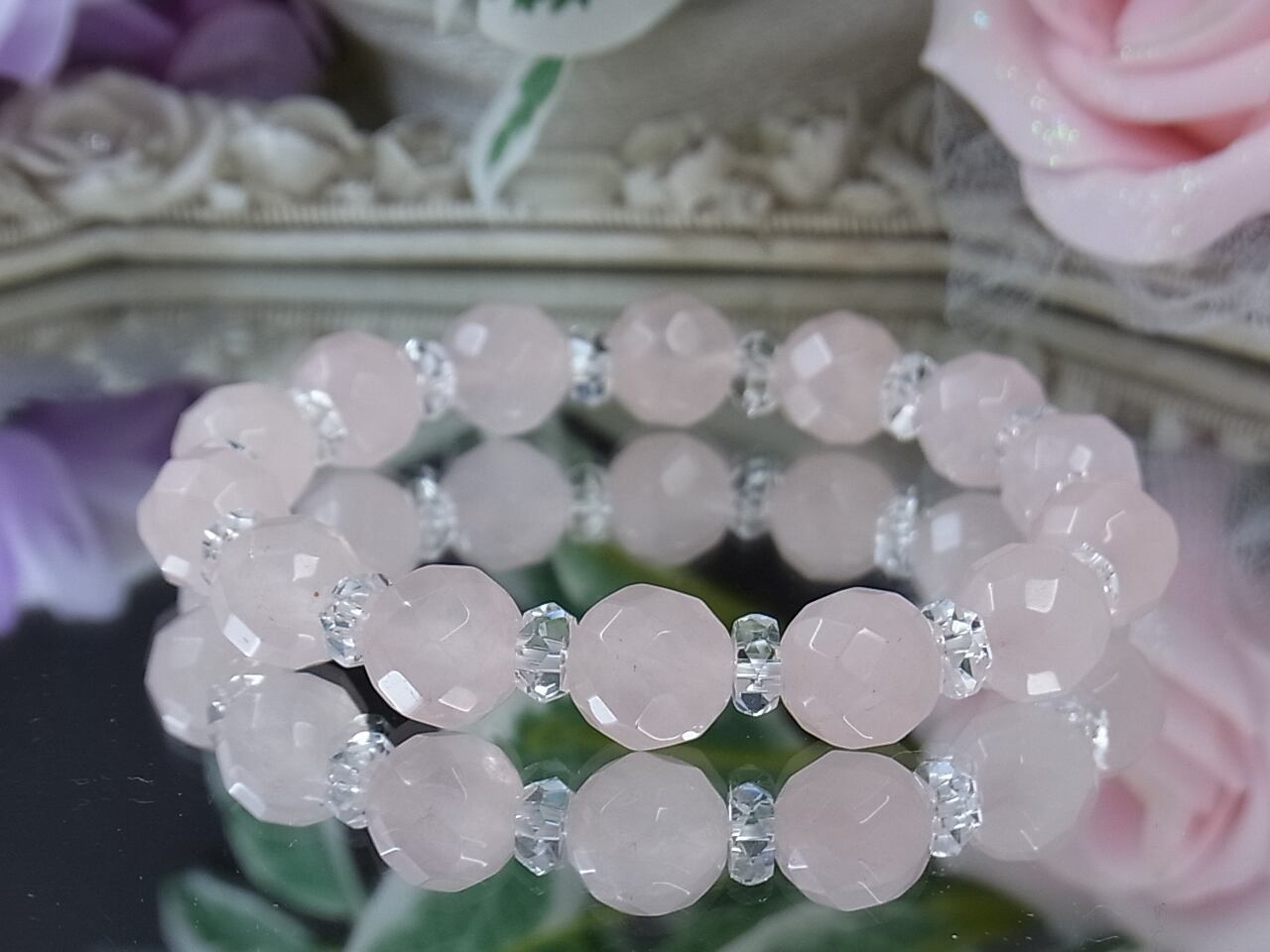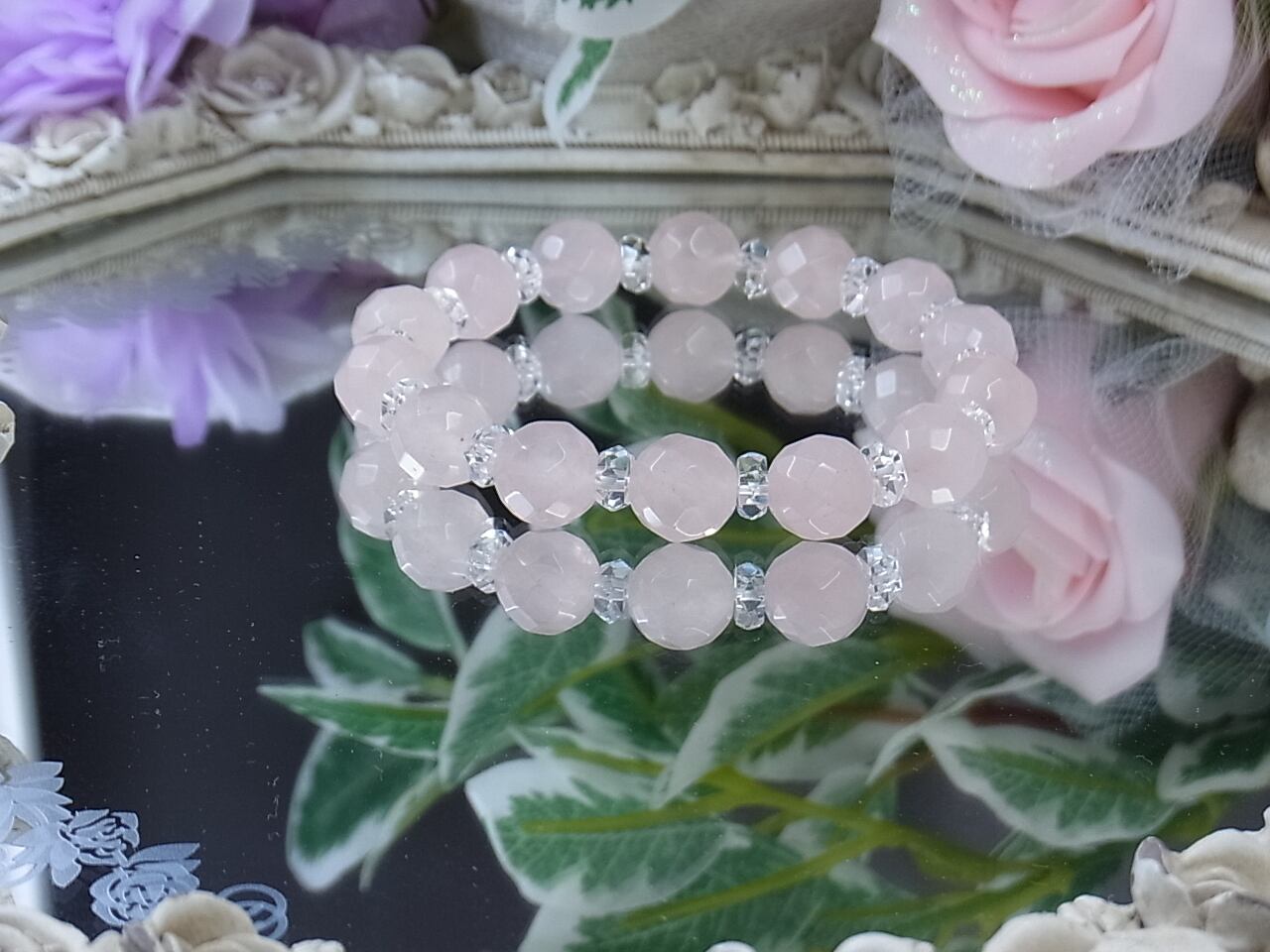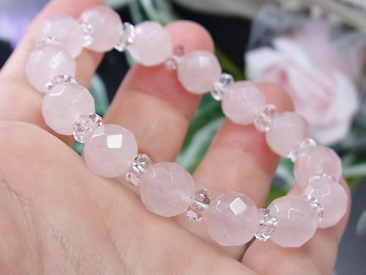上品なローズクォーツのキラキラブレスレット、いかがでしょうか?