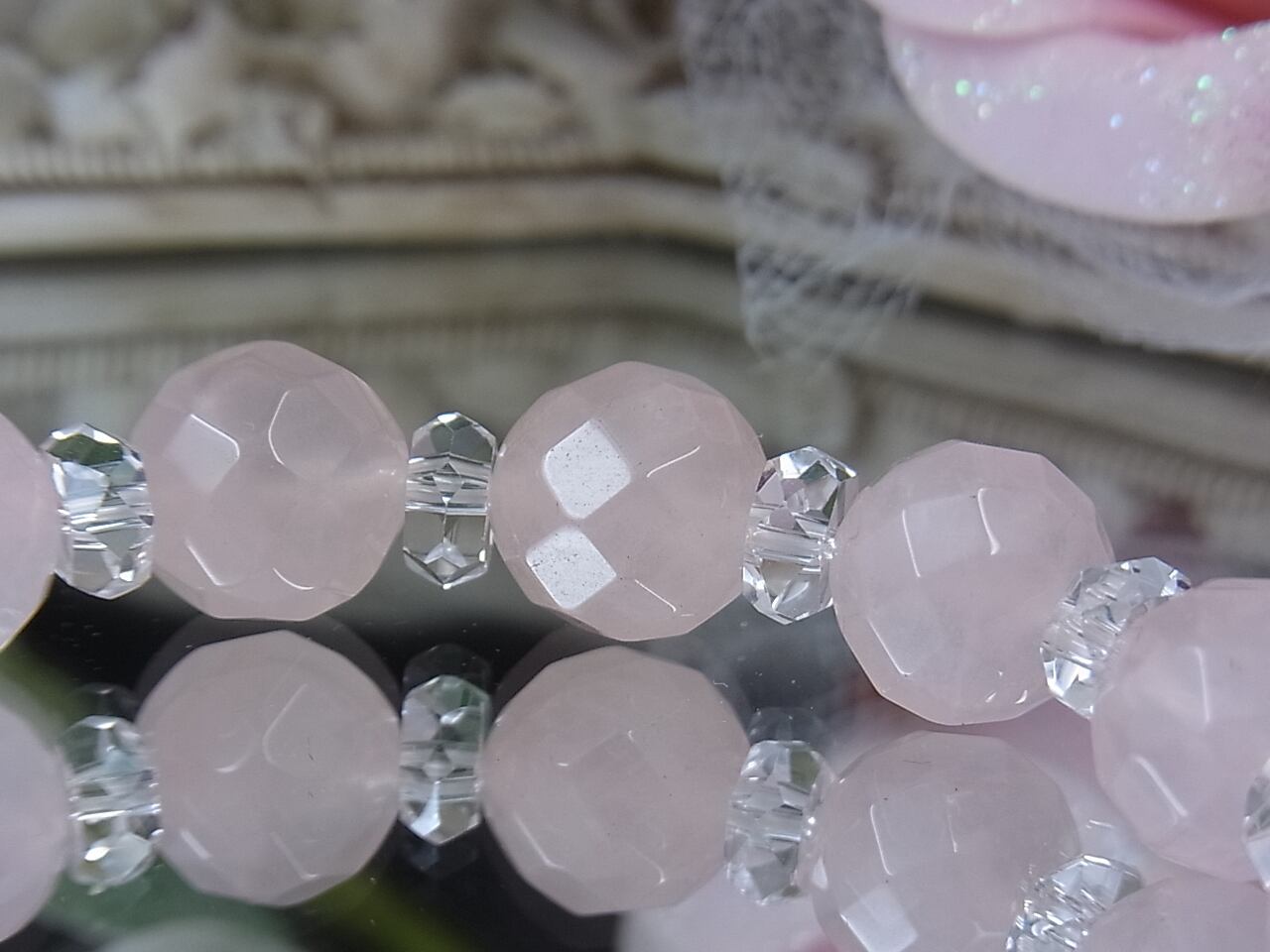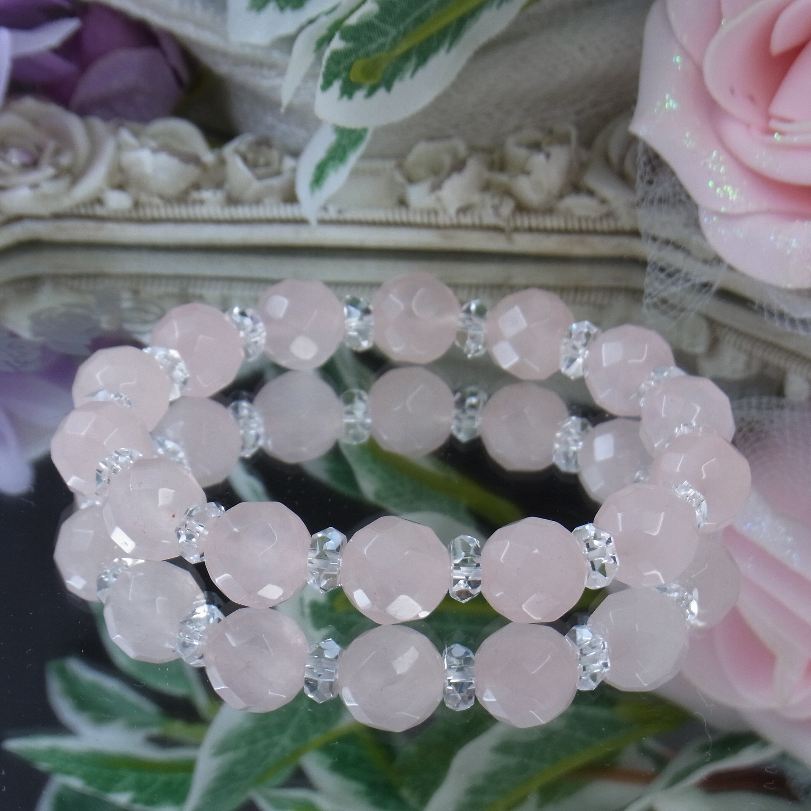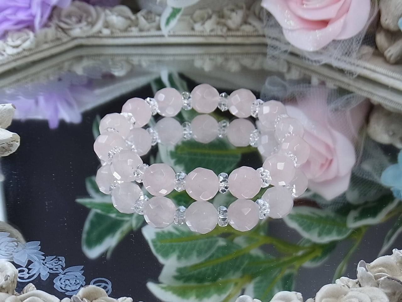上品なローズクォーツのキラキラブレスレット、いかがでしょうか?
