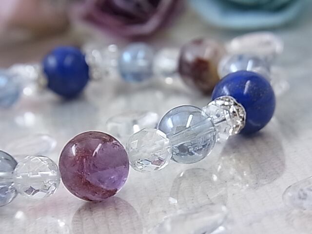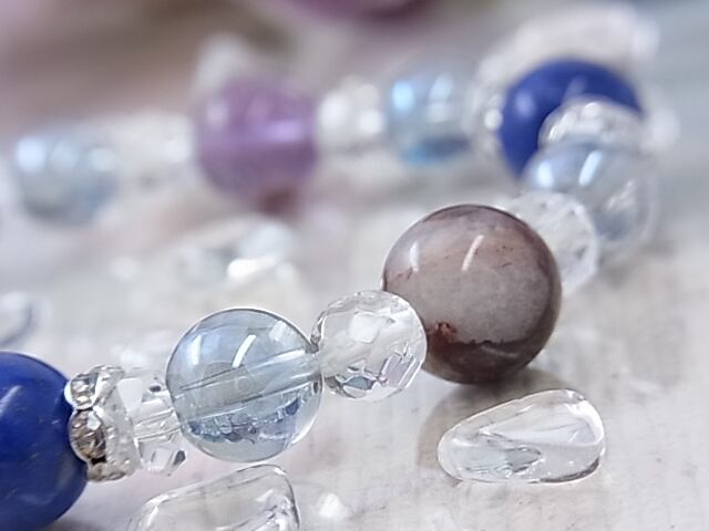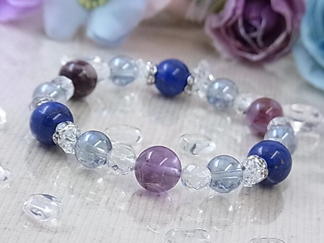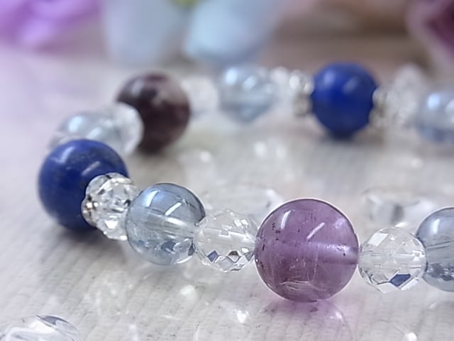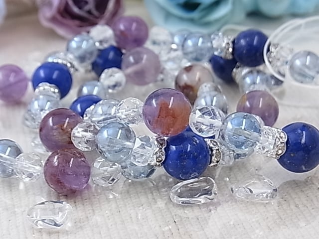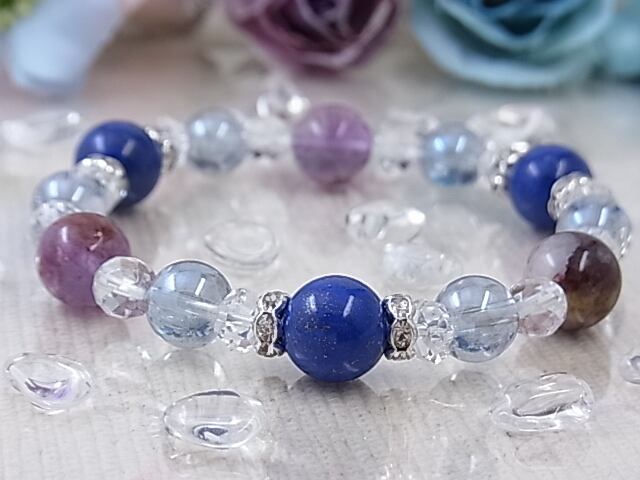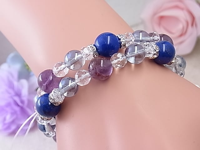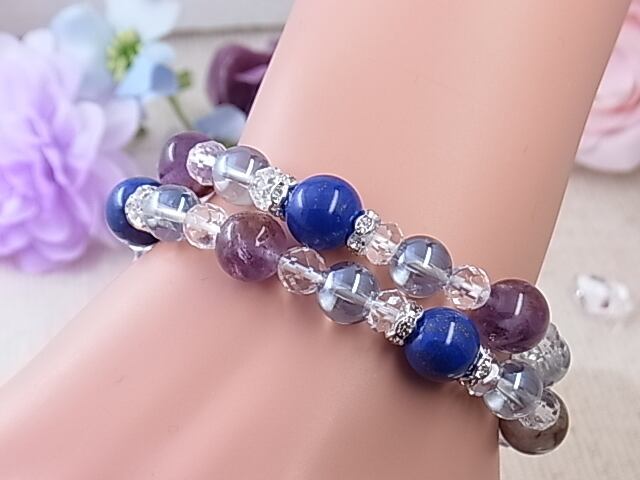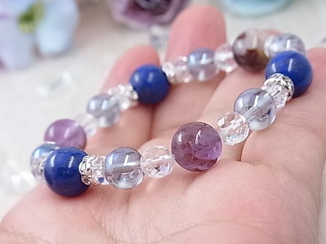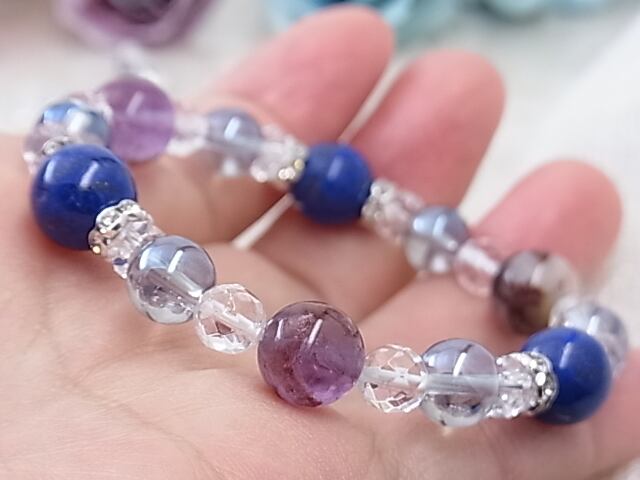 #ラピスラズリ #ガーデンアメジスト #ブルーオーラ #六芒星 #水晶 #オーラ #パワーアップ #シンプル #年末年始 #シック #お守り #お洒落 #ストレス解消 #ポジティブ #疲れているとき #デザインブレスレット #毎日つけたい #瑠璃色 #パープル #天然石アクセサリー #天然石のブレスレット #ゴムブレスレット #着脱が楽 #プレゼント #ねこの夢 #LarimarMJ