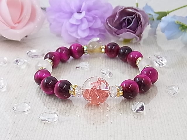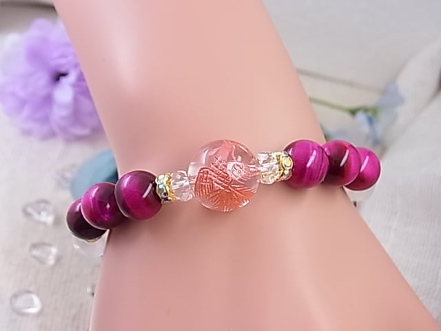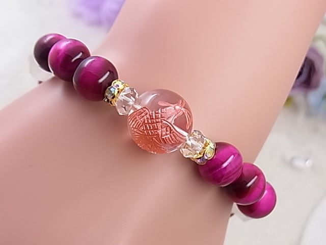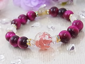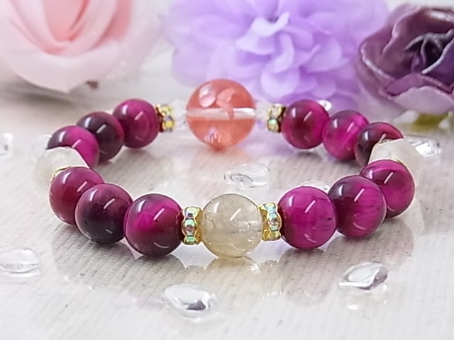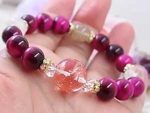 ♥恋の幸せブレス♥ピンクタイガーアイ&ローズクォーツ、