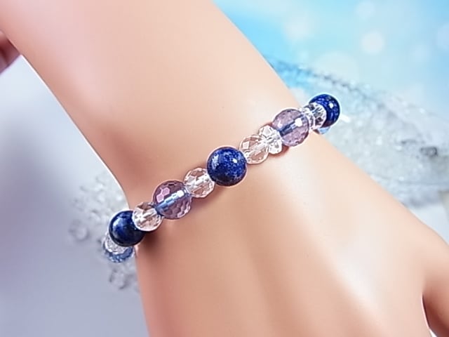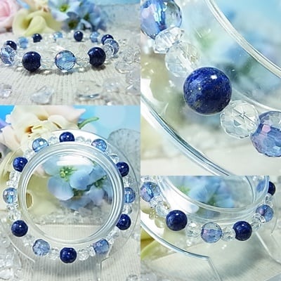 #天然石 #パワーストーン #ゴムブレス #水晶 #ラピスラズリ#宇宙 #強運 #幸運 #お守り #魔除け #金運 #精神を高める #ブルー #オーラ #キラキラ #メンズ #ねこの夢 #LarimarMj