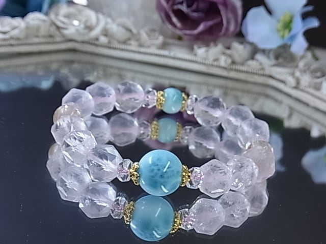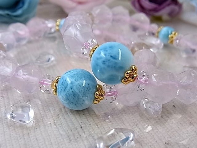 #ラリマー #larimar #ルチル #ローズクオーツ #ヒーリング #癒し #love #beauty #美しい #愛 #世界三大ヒーリングストーン #おしゃれ好きさん #プレゼント #天然石ブレスレット #天然石アクセサリー #オリジナルブレスレット #ストーン#幸せ女子 #Happy #艶やか #薔薇 #華やか #オブジェ #ねこの夢 #LarimarMJ